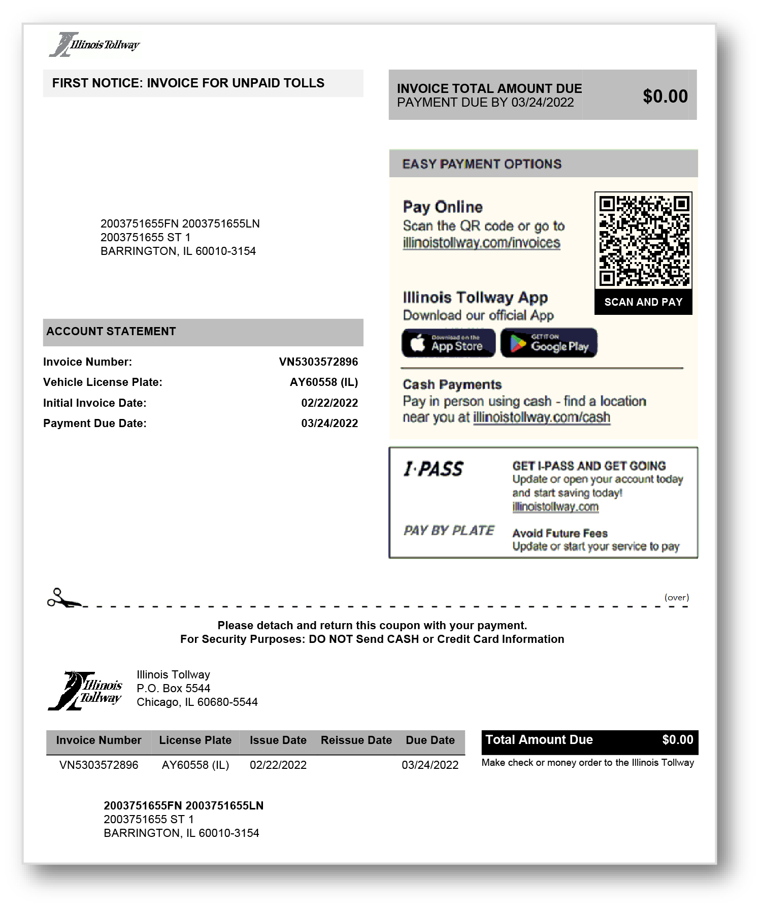When an unpaid toll isn’t paid online, the Illinois Tollway will mail the customer a series of invoices providing multiple opportunities to address unpaid tolls and avoid entering the violation process. Invoices will be sent via U.S. Mail and will include an invoicing fee for each unpaid toll.
